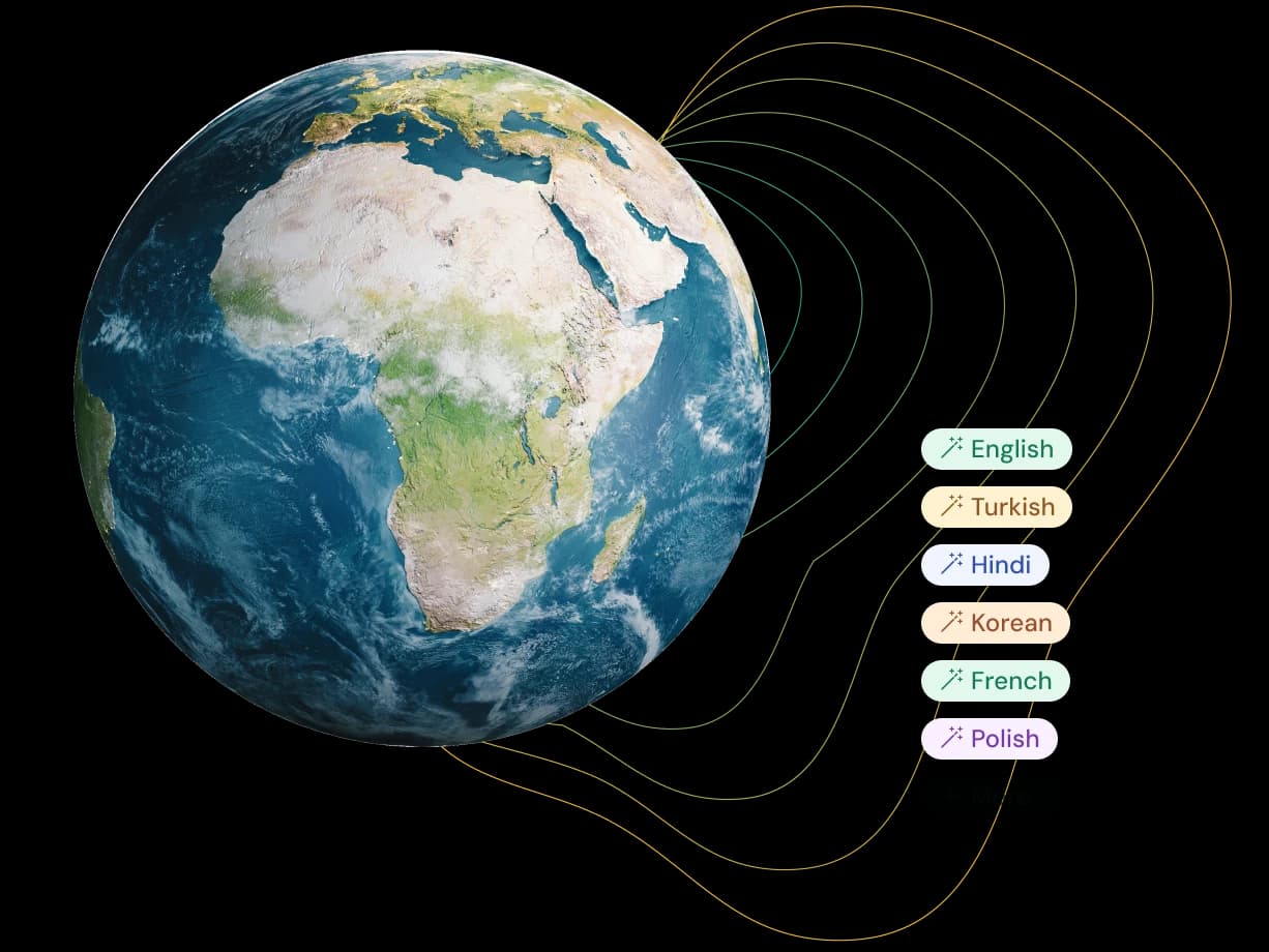 Bring your product to the largest audience possible - in real-time, without the hassle of multiple different language APIs and lengthy setup times.